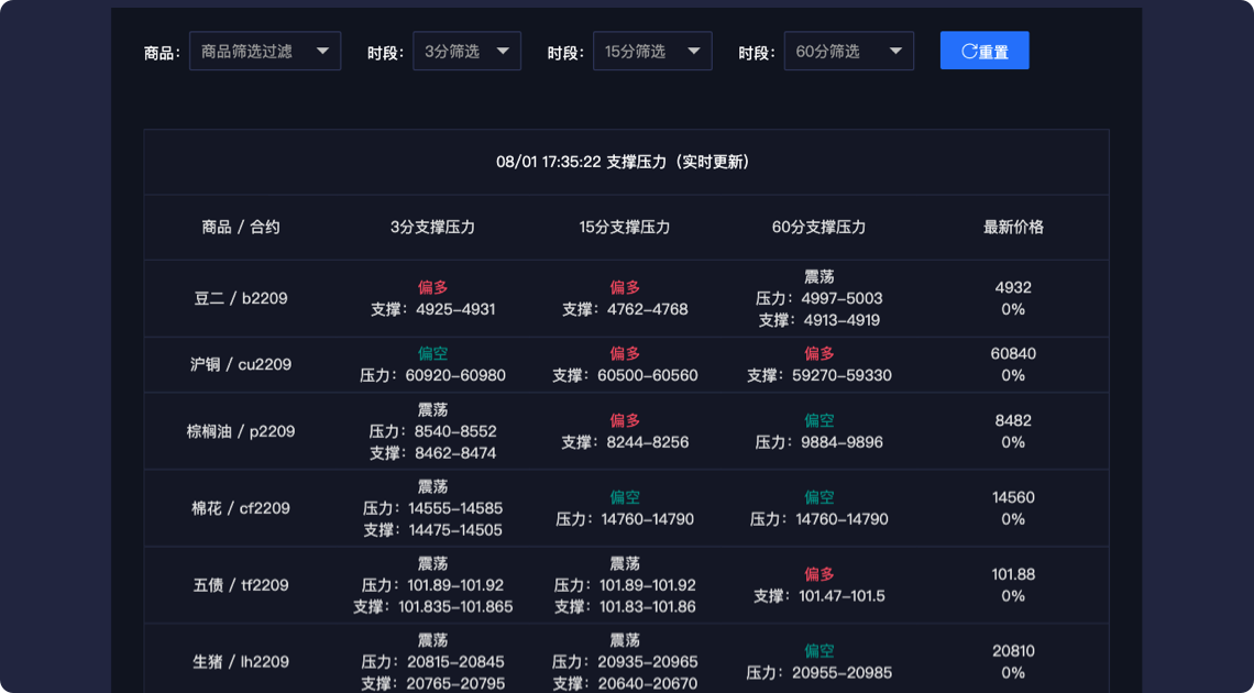 喜欢短线,操作品种很多,哪个有机会就做哪个。智能决策平台有每个品种的支撑压力位,一目了然,再结合多空领先指标更容易确定市场情绪方向,短线交易更轻松。